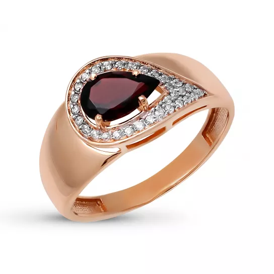 Кольцо с гранатом и фианитом из золота